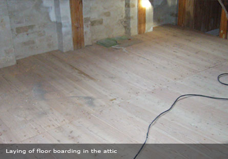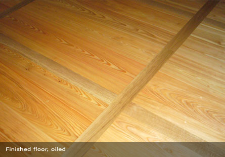 Laying of new larch floor boarding.Solution: