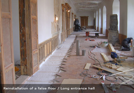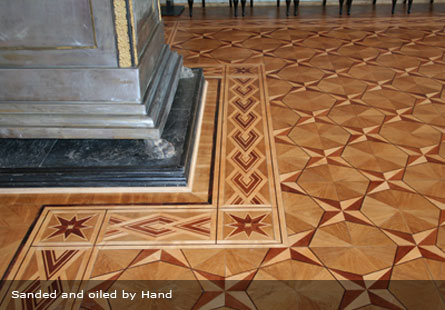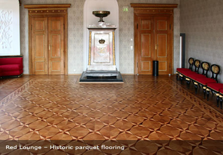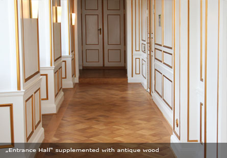 Restoration of the historic parquet, damaged because of the long vacancy of the building and moisture, and partial new construction of the floor based on the historic source.Solution: