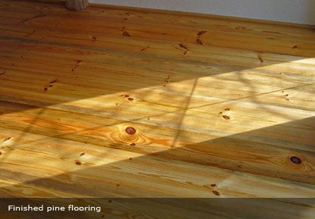 The existing pine pillars of different widths were trimmed, dried and planed from 8 down to 5 cm. They were then provided with groove and tongue and subsequently sanded and oiled.